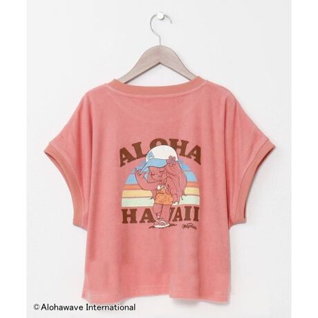 [型番:4CA-6131-2026]【Kahiko×Aloha Mapua】サーフィンとファッションをこよなく愛するキャラクター「Aloha Mapua(アロハマプア)」のトップス。カラフルなサンセットを背景にしたプリントが目を惹くデザインです。肩が隠れるほどの袖丈で、リラックス感のあるシルエット。やわらかなパイル生地が心地よく、ルームウェアとしてもおでかけにもぴったりな一枚です。