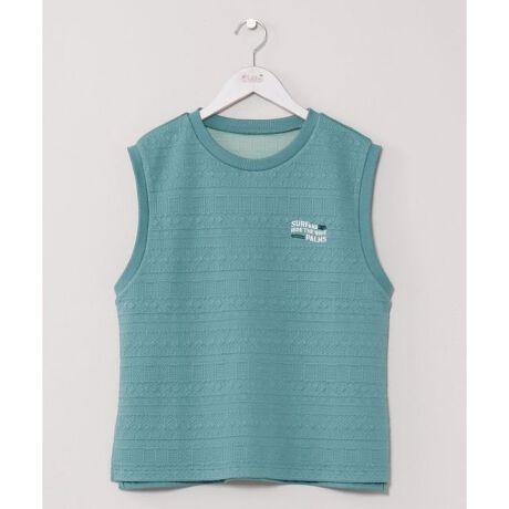 [型番:4CA-6145-2026]ストレッチ性のあるふくれジャカード素材を使用したノースリーブトップス。タイトすぎないシルエットで動きやすく、肌触りも快適。スカートとのセットアップコーデで統一感のあるスタイルが楽しめます。