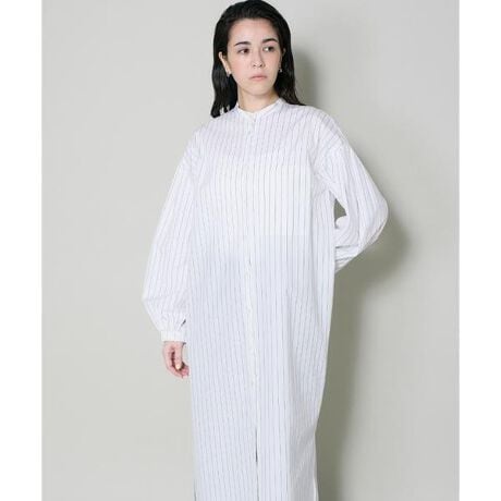 ■デザイン肩を落としたリラックス感のあるシャツワンピース。袖はギャザーディテールでボリュームを出し、一枚で様になるデザインに仕上げました。袖口はゴムイン仕様で長袖〜五分袖まで調節可能。フロント開きのデザインなので、羽織りやレイヤードスタイルにもおすすめです。■素材ストライプ柄がキレイに出るように設計した高密度ポプリン。綿100%で肌あたりも良く、適度なハリ感と滑らかな表情感が知的で軽やかな印象を与えてくれる素材です。・水洗い可・ポケットあり・袖口ゴム仕様■サンプル撮影商品画像の商品はサンプルです。実際の商品とはサイズや色味、素材、デザイン等の仕様が若干変更になる場合がございます。■照明の関係により、実際の製品とは色味が違って見える場合があります。またパソコン・スマートフォンなどの環境により、若干製品と画像のカラーが異なる場合もございます。■サイズ表記はあくまで目安となります。