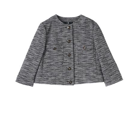 首周りをすっきりと見せるノーカラーとパッチポケットで、程よい抜け感をプラス。ジュエリーのように輝くエポキシボタンが装いを彩ります。裏地を排し、4mm巾の繊細なパイピング始末を施すなど、見えない部分の美しさにも配慮した一着です。現代の女性が美しく見えるよう追求されたシルエットが、品格あるスタイルを演出します。