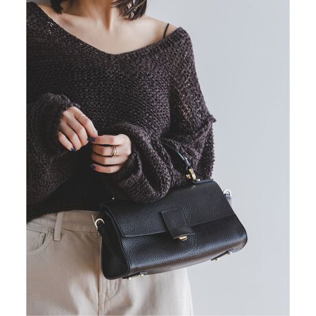 上品なシボ感あるレザーににゴールドの金具がアクセントとなり、持つだけで洗練されたスタイリングが完成します。