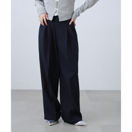 麻調合繊タックワイドパンツ