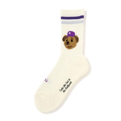 キャップを被ったクマのデザインが目を惹き、コーディネートのワンポイントとして活躍します。