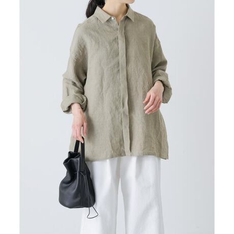 ボックスシルエットが新鮮な表情のレギュラーカラーシャツ。シンプルなデザインに風合いの良いリネン生地を掛け合わせました。小釜で少しずつ染め、天日干しで仕上げたこだわりの素材。身幅はゆったりとしていて、体型をカバーしつつ着るだけでこなれ感が生まれます。サラッとそのままではもちろん、インナーにタートルを合わせたり、ベストとの組み合わせもおすすめ。釦を少し開けて着ると印象が変わり、抜けた雰囲気が増しますよ。スタイリング方次第でロングシーズン活躍するおすすめの一品。