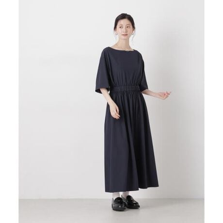 ウエストギャザーボートネックワンピース