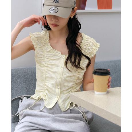 昨年人気だったアイテムが新色を加えて再登場!デコルテをキレイに見せるオープンネックに、フロントのドロストギャザーで表情をつけたブラウス。後ろウエストはシャーリングゴムで程よくフィットし、前はギャザーの調整で着丈のアレンジができ、リボンは結んでも垂らしても楽しめます。襟ぐりや袖口の共地ミニフリルがさりげないアクセント。清涼感のある素材がラフでカジュアルな印象に見せてくれます。ワイドデニムなどのカジュアルなボトムス合わせがおすすめです。立体感のあるカットドビー素材(ブラック・ホワイト)、新色カットドビー小花柄プリント素材(オフベースフラワー)、新色ソフトなシボ感に異ピッチストライプ素材(サックスストライプ柄・イエローストライプ柄)を揃えています。※モデルの着用画像の場合、光の当たり具合により、実際の色味と異なって見えることがございます。色味は、商品単体の画像をご参照ください。