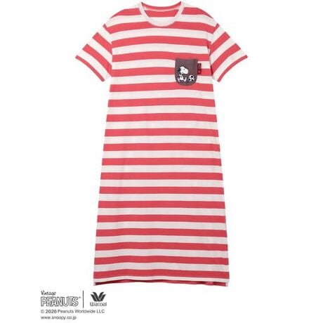 ・本体に、暑い季節にここちよいシャリ感のある強撚糸を用いた綿100%の天竺素材を使用・胸ポケットに、綿100%の二重ガーゼを使用・胸ポケットにはスヌーピーの刺繍をあしらいアクセントに・ゆったりとしたシルエットのワンピース・存在感のあるボーダー柄でリラックスシーンを楽しく演出 SXカラー/野球をしているスヌーピー(胸ポケットの刺□) REカラー/サッカーをしているスヌーピー(胸ポケットの刺□)※お洗濯は、必ず「取扱い表示」にしたがってください。