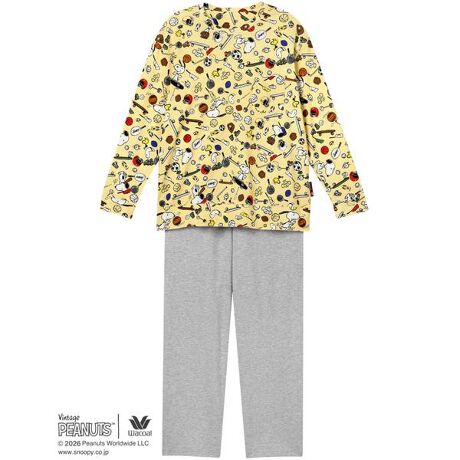 [型番:FDX561]・トップス本体に、綿100%のスムース素材を使用 ・ボトム本体に、暑い季節にここちよいシャリ感のある強撚糸を用いた綿100%の天竺素材を使用・トップスはスヌーピーが楽しくスポーツをしているプリント・トップスのプリントを引き立てる無地のボトム※お洗濯は、必ず「取扱い表示」にしたがってください。