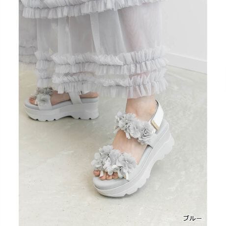 ふんわりとしたフラワーモチーフが気分高まるスポーツサンダル。