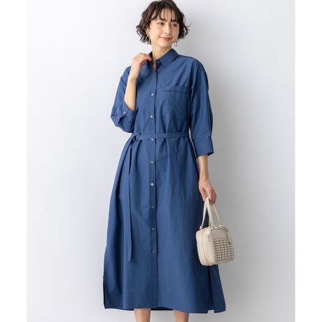 一枚でスタイリッシュに仕上がる、ミニマルなデザインのシャツワンピース。身体のラインを拾わないゆったりとしたIラインシルエットが、リラックス感のある着心地と体型カバーを叶えます。胸ポケットや肩にあしらわれたハシゴレースが、さりげない立体感と洗練されたアクセントをプラス。付属の共布ベルトでウエストマークすれば、メリハリのあるきちんとした印象に。お仕事や少し改まったシーンにも対応します。フロントボタンを開けて羽織りとしても活躍するため、春先から秋口まで長くお使いいただけます。一枚でさらりと着こなすのはもちろん、ワイドパンツとレイヤードした大人のリラックススタイルもおすすめです。カラーは、柔らかなニュアンスのモカ(#030)、シックで落ち着いたダークブラウン(#035)、爽やかで洗練されたグレイッシュブルー(#074)の3色展開です。