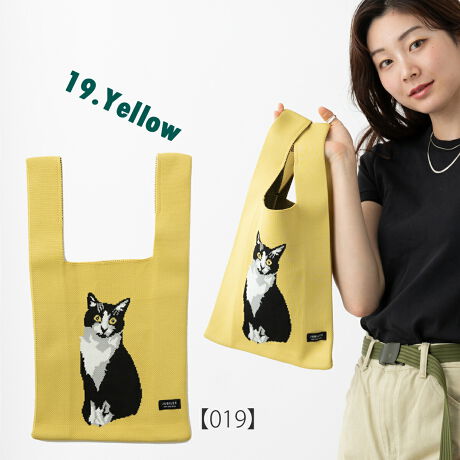 大胆なデザインとカラーが目を引く、トレンドのニット素材のトートマルシェバッグ
