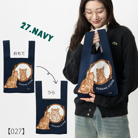 大胆なデザインとカラーが目を引く、トレンドのニット素材のトートマルシェバッグ