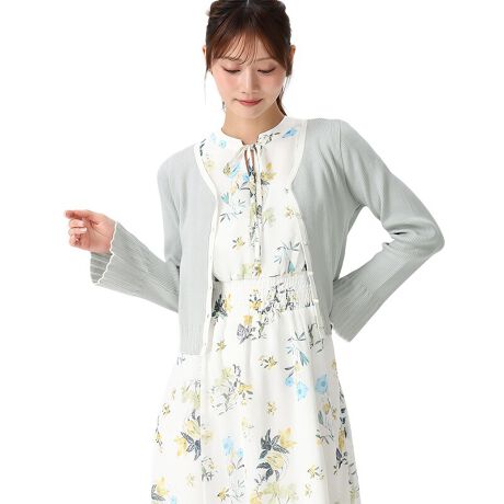 2026春夏新作 透かし柄フレア袖配色スパークカーディガン