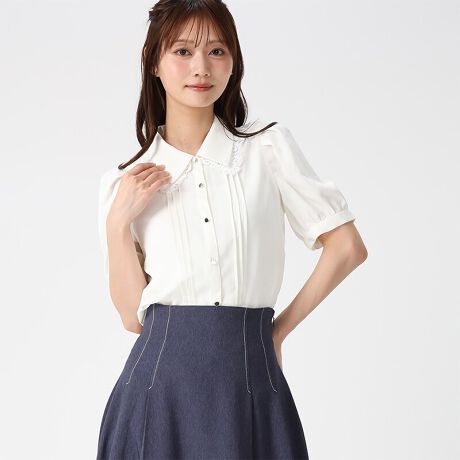 2026春夏新作 襟レースピンタックブラウス