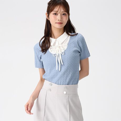 2026春夏新作 シャツレイヤードケーブルリボンニット