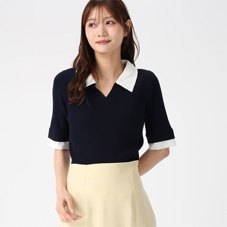 2026春夏新作 レースシャツレイヤード風スキッパーニット