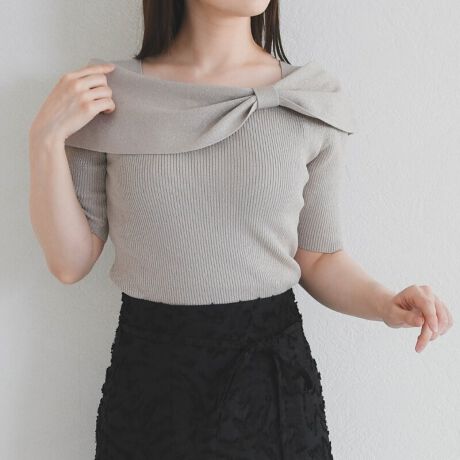 2026春夏新作 アシメリボン2way配色ケープニット
