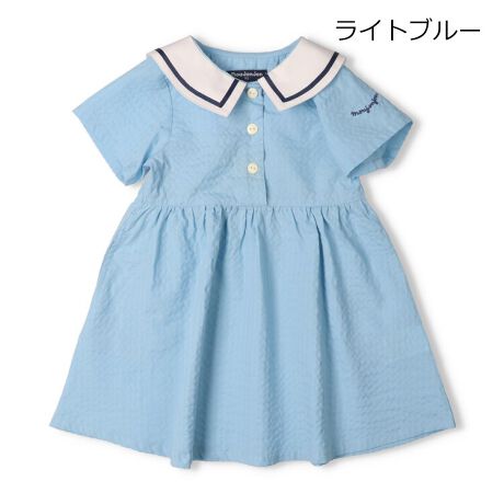 ポコポコと凹凸感が涼し気なサッカー素材。毎年人気のセーラーカラー、セーラー衿が夏らしい半袖ワンピース。同じ素材のハーフパンツ(M37100)もあるので、兄弟姉妹やお友達と男女でアイテム違いでペア、リンクコーデ、お揃い、おそろいコーディネートも楽しめます!【アイテム】トップス シンプル ガーリー フェミニン カジュアル お洒落 オシャレ かわいい 可愛い 普段着 デイリーウェア お出かけ着 お外着 お外遊び着 子ども こども 女児 女の子 ガールズ キッズ ベビーサイズ トドラーサイズ 幼稚園 保育園 小学校 通園 通学 小学生 2026年春夏物新作 丸高衣料 ネイビー 紺色 ライトブルー 水色 ムージョンジョン 兄妹 姉弟 兄弟 姉妹 お揃い オソロ おそろい お揃いリンク リンクコーデ ペアルック