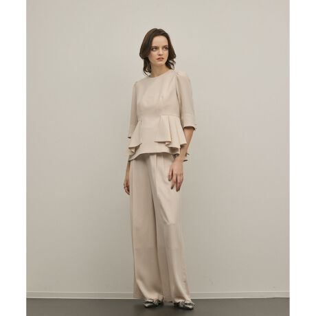 [型番:0126211203]【Japan Fabric】軽さがありながら透けにくいトリアセ高混率のストレッチジョーゼット素材を使用したパンツ。脇に入れたパイピングがポイント。同シリーズでおつくりしたトリアセペプラムトップ【品番:0126241203】のご用意もございます。※こちらのモデル着用画像はサンプル品を撮影しております。実際の商品と仕様、加工、サイズが若干異なる場合がございます。予めご了承くださいませ。