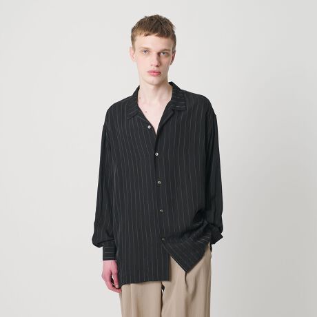 程よく緩さのあるオープンカラーシャツ。