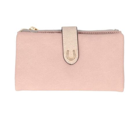 【トライカラーと蹄鉄が魅力的】小銭入れが外せてミニ財布にもなる、トライカラーの2WAY長財布【小銭入れが外せる2WAY】中央のコインケースがファスナーで取り外せて、カードも入るミニ財布として単体でも使える!【最大20枚のカード収納力】本体に12枚、取り外しパーツに8枚と大容量だから、カードが多い方にもうれしい◎【馬蹄モチーフの上品な佇まい】さりげなくあしらわれた蹄鉄デザインとトライカラーの配色が、大人可愛い雰囲気を演出してくれる一品。【レシートもすっきり仕分け】フリーポケット4つにファスナーポケットも備え、レシートやチケットの迷子を防いでくれる安心の設計〇【軽やかフェイクレザー素材】柔らかくて手になじむ合成皮革を採用し、毎日持ち歩きたくなるロングウォレット♪