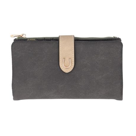【トライカラーと蹄鉄が魅力的】小銭入れが外せてミニ財布にもなる、トライカラーの2WAY長財布【小銭入れが外せる2WAY】中央のコインケースがファスナーで取り外せて、カードも入るミニ財布として単体でも使える!【最大20枚のカード収納力】本体に12枚、取り外しパーツに8枚と大容量だから、カードが多い方にもうれしい◎【馬蹄モチーフの上品な佇まい】さりげなくあしらわれた蹄鉄デザインとトライカラーの配色が、大人可愛い雰囲気を演出してくれる一品。【レシートもすっきり仕分け】フリーポケット4つにファスナーポケットも備え、レシートやチケットの迷子を防いでくれる安心の設計〇【軽やかフェイクレザー素材】柔らかくて手になじむ合成皮革を採用し、毎日持ち歩きたくなるロングウォレット♪