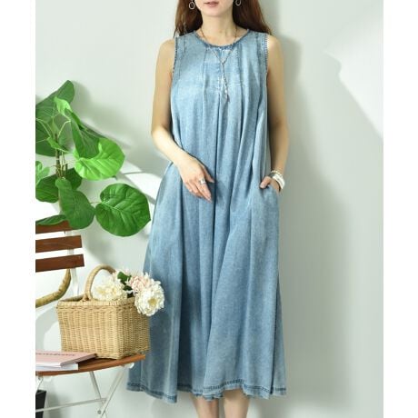 パウダーシルクデニム風タックZIPワンピース