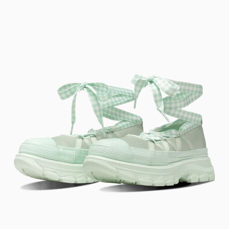 トレックウエーブの厚底ソールに、バレエコアのデザインを融合。