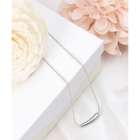 シンプルながらニュアンスのあるバーデザインが、首元にさりげないアクセントを添えます。