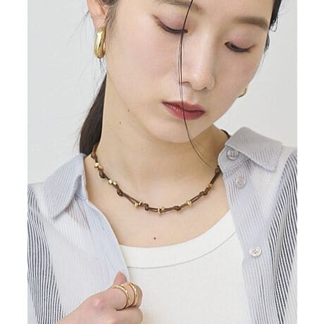 さざれのようなメタルパーツとコードの組み合わせがスタイリッシュなネックレス。コードのノットデザインがこなれた印象を演出し、首元に洒落感のあるアクセントを加えます。シックなブラウンと爽やかなアイボリーの印象の異なる2色展開にも注目。お手持ちのネックレスと重ねたレイヤードスタイルもおすすめです。※モデル着用画像は、光の当たり具合で色味が違って見える場合がございます。※お使いのモニター環境によって商品の色味が違って見える場合がございます。