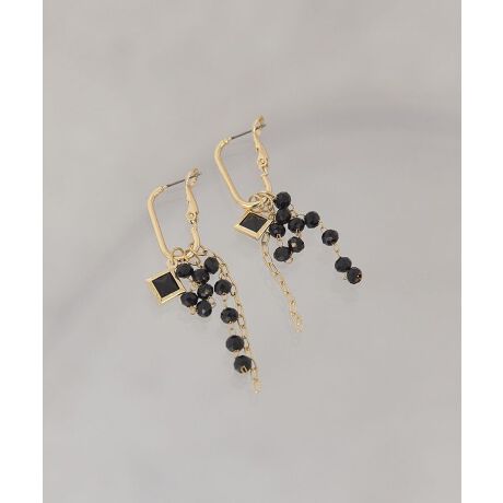 きらりと輝くビーズとスクエアモチーフ、チェーンを組み合わせたお洒落なピアス。耳元で上品に揺れ動き、顔まわりをぱっと華やかに演出します。軽量で付け心地が良いのもポイント。カジュアルからきれいめまで幅広いファッションに合わせやすく、デイリーに活躍するおすすめのアイテムです。※モデル着用画像は、光の当たり具合で色味が違って見える場合がございます。※お使いのモニター環境によって商品の色味が違って見える場合がございます。