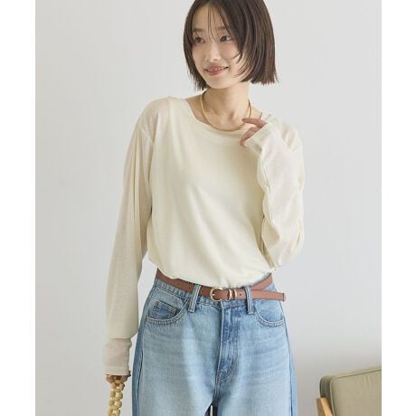 抜け感をまとう、大人のシアープルオーバー。やわらかな透け感が魅力のシアープルオーバーです。裾に向かって丸みを描くラウンドカットが、さりげなく動きを生み出し、軽やかな雰囲気を演出します。ヒップラインを自然にカバーする丈感で、体のラインを拾いにくいのもうれしいポイントです。ほどよくゆとりのあるシルエットはリラックス感があり、デニムやワイドパンツ、スカートまで幅広く合わせられます。薄手で重ね着しやすく、タンクトップやキャミソールとのレイヤードも楽しめます。季節の変わり目にも活躍し、通勤やお出かけなどさまざまなシーンに対応できる万能トップスです。透け感[ややあり]