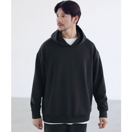 空気を含んだような膨らみと適度なハリを持つハイポンチ生地。自社開発したオリジナルファブリックです。密度高く編み上げているため一般的なスウェットなどと比べてもへたりにくく、フードの立ちも美しくキープされます。