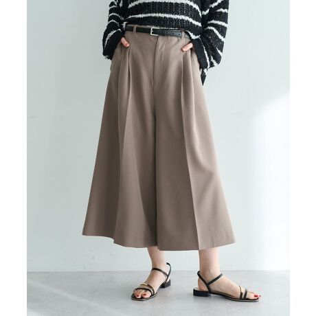 品のある素材感がきれいめな印象のクロップド丈パンツ。