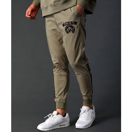 刺繍エンブレムが引き立つ、大人仕様のジョガーパンツ。