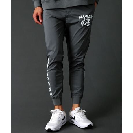 刺繍エンブレムが引き立つ、大人仕様のジョガーパンツ。