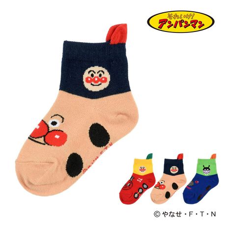 「アンパンマン」の仲間たちをあしらった足元をキュートに飾るソックスが登場。使い勝手がよく、デイリーに活躍するショート丈を採用しました。かかとにベロが付いていて、お子様一人でも履きやすい仕様で「履育」にもGOOD!お名前スペースが付いているので、通園・通学にもおすすめです。