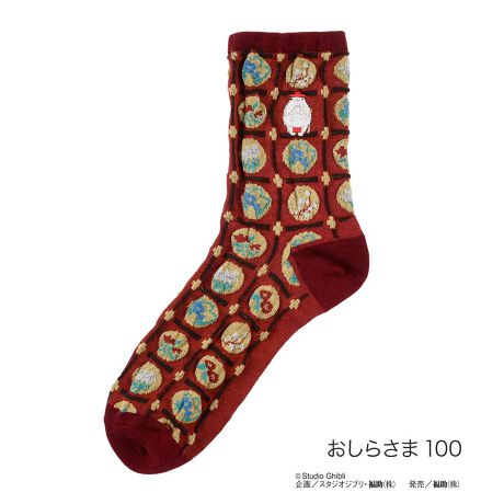 大人気スタジオ・ジブリの千と千尋の神隠しよりおしらさまをメインとした総柄のクルー丈ソックスです。鮮やかポップで可愛らしい一足です。