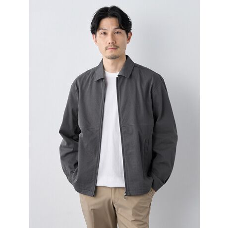 [型番:7251112]【 トレンド感のある新型ブルゾン 】立体感のある細畝サッカーを使用した新提案ジップアップブルゾン。清涼感のある見た目に肌触りの良さやストレッチ性を加えた多機能な素材を使用。衿や前立ての別布使いがアクセント。トレンド感のあるゆったりとしたシルエットでシャツやポロシャツの上から気軽に羽織れる便利な1着。