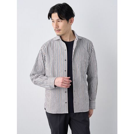 播州生地ウェーブストライプ長袖シャツアウター