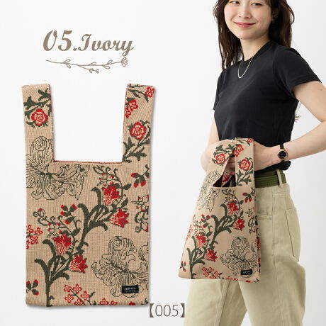 ウィリアムモリスのデザインを使用した、トレンドのニット素材のトートマルシェバッグ