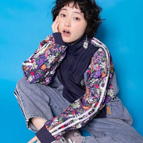 【ジャージ×デニム×花柄のリメイク風ブルゾン】