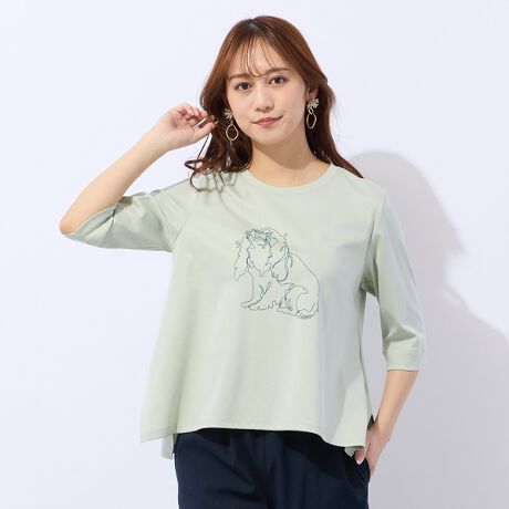 愛らしいキャバリアが目を引くプリントT。シンプルな線で描かれているので主張し過ぎることなくすっきりとしていて◎。