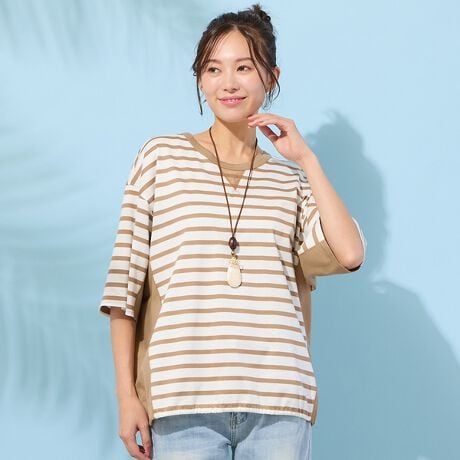 ハリコシのあるタッチと、柔らかな風合いのバランスが取れた素材で作ったボーダー柄カットソー。
