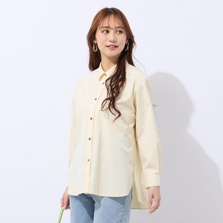シンプルなのでレイヤードもしやすくベストやニットなどにも合わせられ、汎用性の高いアイテムです。キレイめオフィススタイルからデニム合わせのカジュアルスタイルまで合わせやすいブラウスです。
