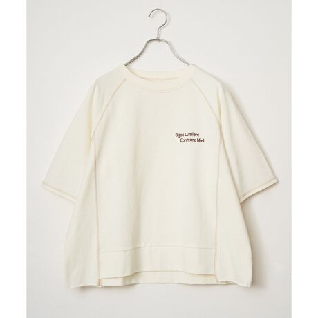 ミニ裏毛切り替え刺繍5分袖プルオーバー