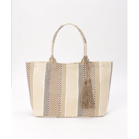 春夏のコーデに映えるカラフルな色使いの織り生地を使用した、A4サイズ対応の雑材トート。