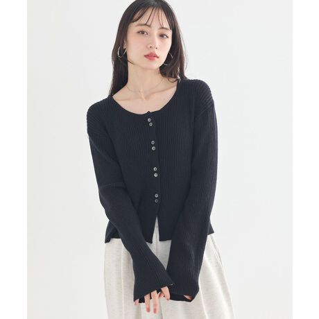 やさしい着心地で、毎日にちょうどいい万能感細かなリブ編みが程よいフィット感を生み、体のラインをきれいに見せてくれます。クロップド丈は重たくなりにくく、軽快な印象をプラスします。柔らかい素材を使用しているため、肌当たりが良く、リラックスして着用できます。軽めの羽織りとして使いやすく、室内外を問わず活躍します。ボタンの開け閉めで表情が変わり、その日の気分やスタイルに合わせた着こなしが楽しめます。シンプルなデザインなので合わせるアイテムを選ばず、コーディネートの幅が広がります。毎日の装いに取り入れやすく、大人可愛いスタイルを支えてくれる一枚です。透け感[ややあり]