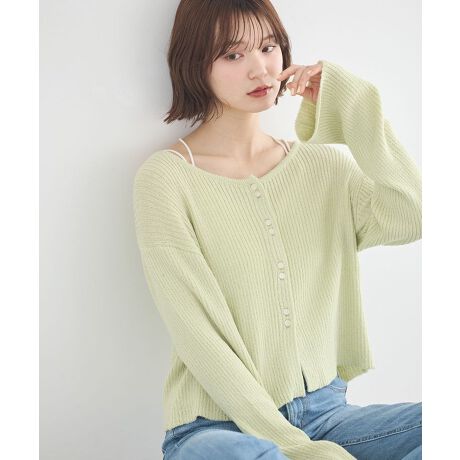 やさしい着心地で、毎日にちょうどいい万能感細かなリブ編みが程よいフィット感を生み、体のラインをきれいに見せてくれます。クロップド丈は重たくなりにくく、軽快な印象をプラスします。柔らかい素材を使用しているため、肌当たりが良く、リラックスして着用できます。軽めの羽織りとして使いやすく、室内外を問わず活躍します。ボタンの開け閉めで表情が変わり、その日の気分やスタイルに合わせた着こなしが楽しめます。シンプルなデザインなので合わせるアイテムを選ばず、コーディネートの幅が広がります。毎日の装いに取り入れやすく、大人可愛いスタイルを支えてくれる一枚です。透け感[ややあり]