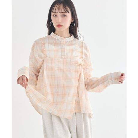 軽やかチェックで楽しむ、大人のレイヤードスタイル。やさしい色合いのマドラスチェックが目を引く、レイヤードコーデを楽しめるセットアイテムです。軽やかなシアー素材のシャツはほどよい透け感があり、季節感のある爽やかなスタイルを演出します。首元はバンドカラーデザインですっきりとした印象に仕上がり、上品な雰囲気をプラスしてくれます。エプロンライクなビスチェを重ねることで、シンプルなシャツスタイルがぐっと華やかな印象になります。サイドのリボンデザインがアクセントになり、自然とメリハリのあるシルエットを作ってくれるのも魅力です。セットで着ればトレンド感のあるコーディネートが簡単に完成し、単品使いすれば着こなしの幅も広がります。カジュアルなお出かけや休日のリラックススタイルなど、日常のさまざまなシーンで活躍してくれるアイテムです。透け感[ややあり]